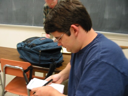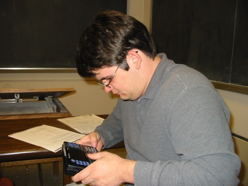 Here's Carl trying to figure out a TI-92 Plus.... it's a little big for you, give it back to me.....